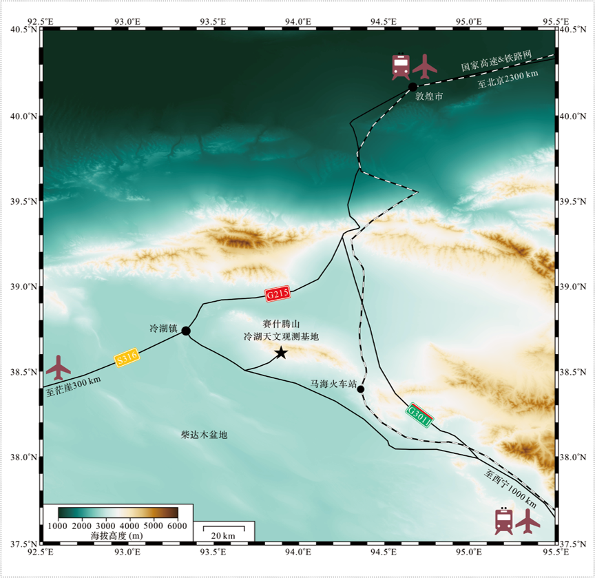 海西州政府与青海省政府通过科技厅给予了大力支持,所以我们得以在这里开展工作。2017年底,我受当地政府的邀请到冷湖考察,发现那里有一座高山——赛什腾山。沙尘是由于风把沙带起来而产生的,所以沙尘的密度会随着高度呈指数下降。我在2017年10月底到达这座高山的山脚,山脚下已经比柴达木盆地高出三四百米,而沙尘明显比下面小得多。所以我对在山上选址抱有很大的希望。