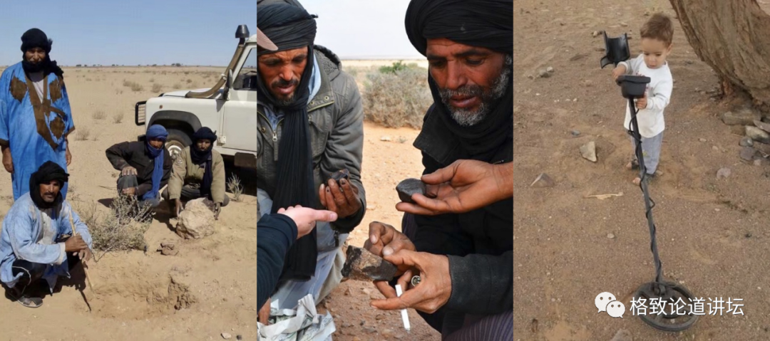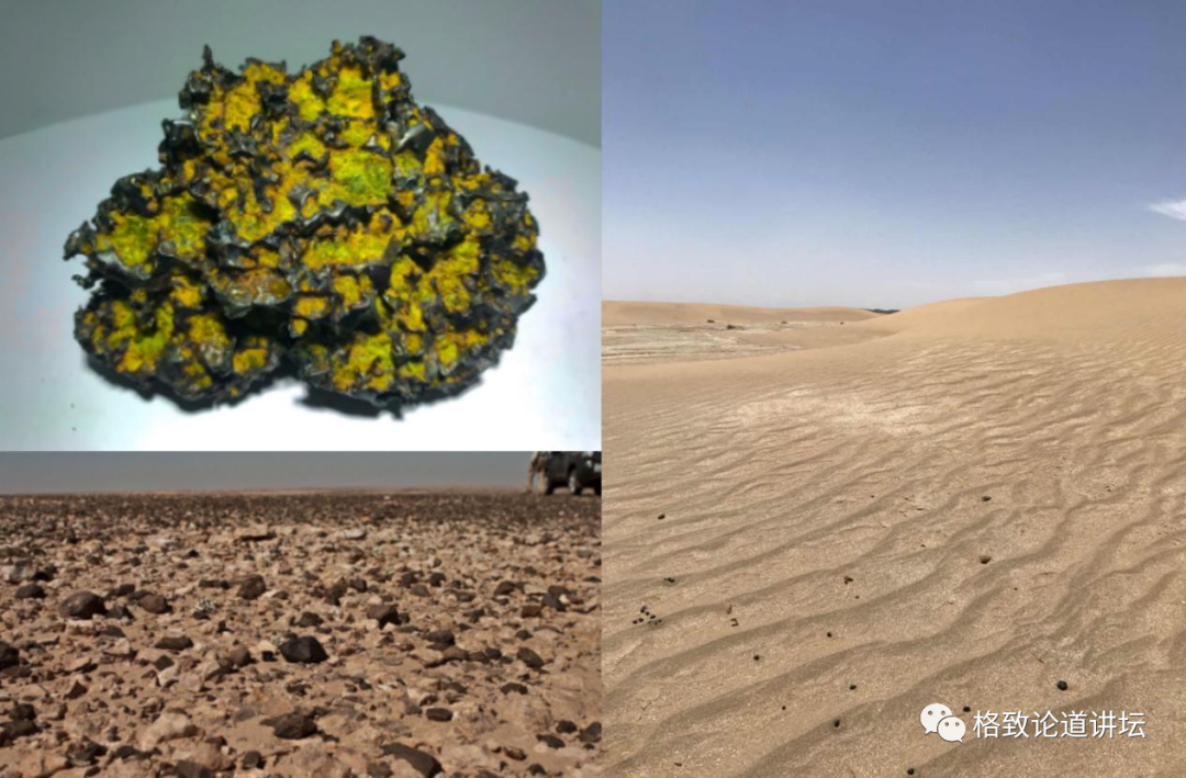 ▲ 戈壁沙漠陨石富集区以及其中发现的陨石