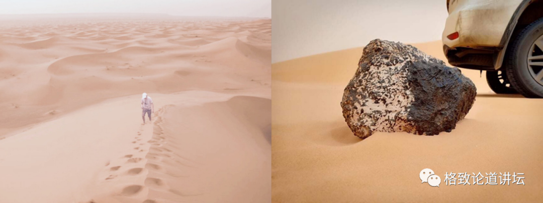 试想一下,在一片一望无垠的沙漠里,地表环境是完全单一的。那么,如果你发现沙漠里有一块非常突兀的石头,就需要重视起来了:这很可能就是一块陨石。而我人生的第一块陨石也是在这样偶然之间发现的。