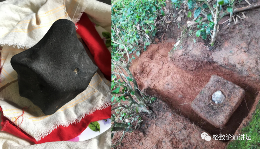 我们也比较幸运,成功回收了最大的一颗陨石主体,大概有1.28公斤重。这颗主体所在的陨石坑是一个特别好的科普展示实物,我就和同事一起把它划出了一个立方体,然后运了回来。现在,西双版纳的主体陨石和它的陨石坑被展览在新建成的上海天文馆,大家可以去看一看。