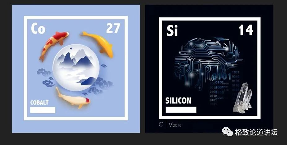 “美丽化学”项目也影响了很多人。以下两张图出自一个就读于北京国际高中的女孩。她看到我们的作品后,知道原来可以有这样一个职业,把她喜欢的艺术和化学结合到一起,她将来也想从事这样的职业。她现在拥有一个叫做“Alchemy”炼金术的网站,并在上面给每一个化学元素画插画。