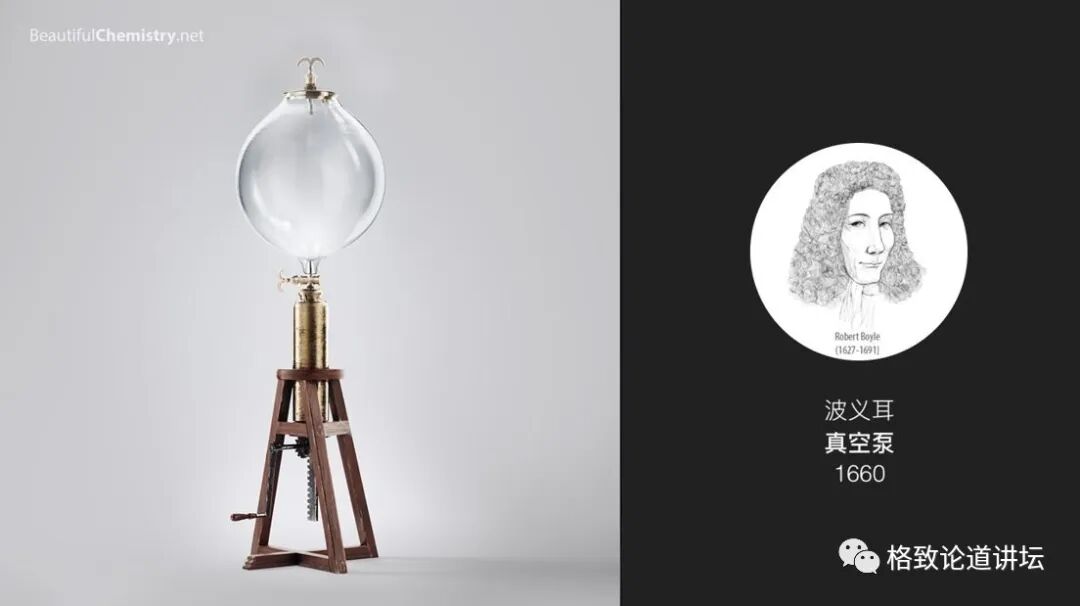 化学美的另一面是科学史。我们用电脑图像的方式复原了很多非常经典的仪器。例如博伊尔的真空泵。博伊尔凭借此仪器观察到燃烧在真空中不能进行。