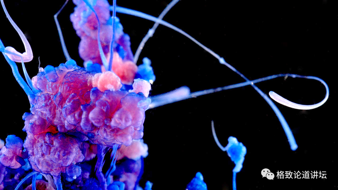 我们也运用艺术创作的手段来展现化学反应。以下的视频,是我们美丽科学团队中的朱文婷利用显微镜拍摄的反应过程。她毕业于清华大学美术学院,那么艺术家用化学反应进行创作是什么样子的呢?