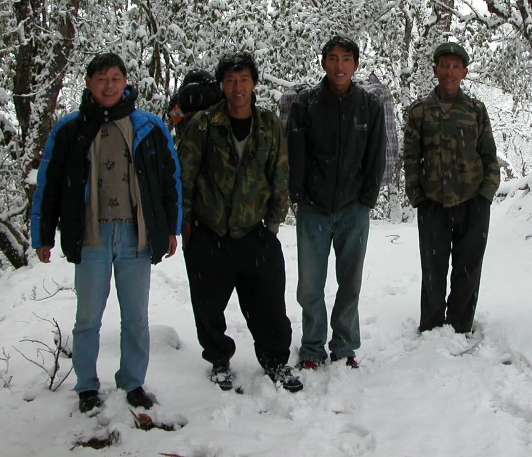 我到了白马雪山以后,就觉得这个保护区特别需要我。因为这里的工作人员很多都是没有上过大学的。只有一个读了中专的人在当所长,其他的都是中学生,以初中生为主。我选了我旁边的这两位作为助手,他们初中毕业以后来到白马雪山,跟我一起工作了差不多十年,从十七八岁干到了二十七八岁。