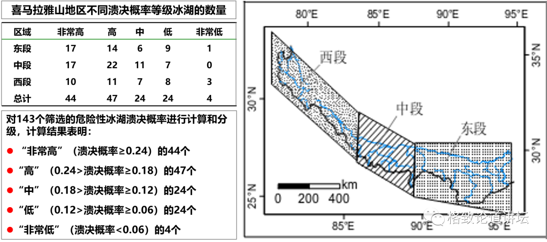 上图是喜马拉雅山地区冰湖的调查结果。什么叫冰湖?就是冰川退缩以后,前面的洼地积累了冰川的融水。
