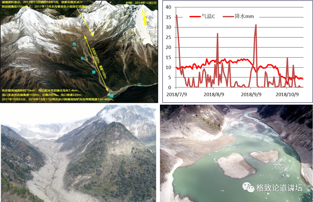 2018年在西藏的林芝加拉村东普沟发生了冰崩。冰崩带来的大量碎屑物质从支沟进入到雅鲁藏布江的干流,进入干流以后,把雅鲁藏布江阻断。所幸的是由于雅鲁藏布江水流量比较大,把堰塞体冲开了,没有形成溃坝事件。