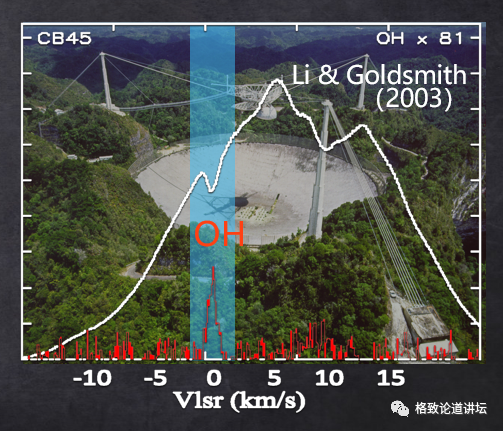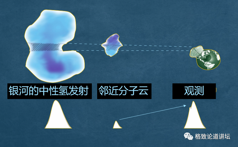 对这个谱线的发射,我们有不同的观测办法。2003年,我和我的博士生导师Goldsmith教授就利用美国的阿雷西博望远镜发展了一个相对新颖的方法——氢气的窄线自吸收(HINSA)。