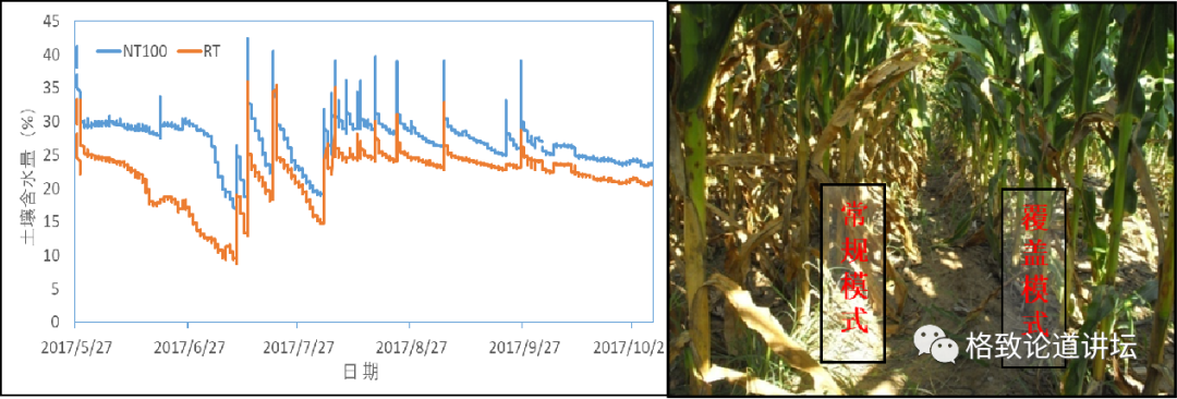 从图上看,没有保护性耕作时,在干旱的时候,发黄的和不发黄的是完全不一样的,所以增强抗旱保墒能力很重要。