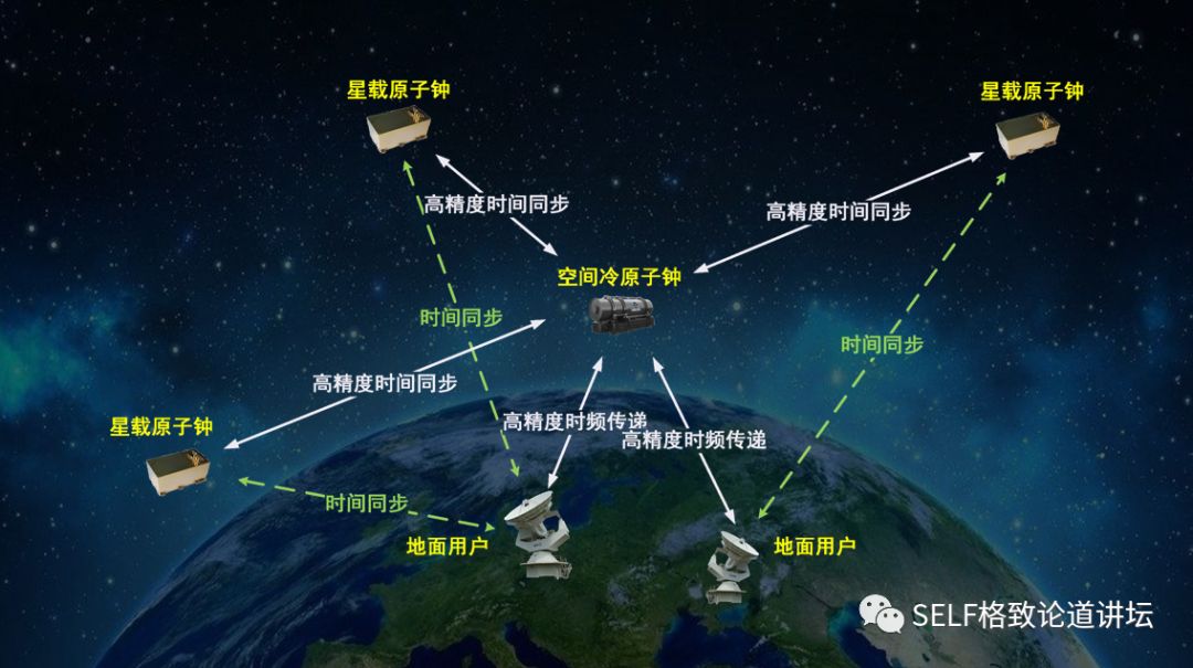 大家知道,现在卫星上的原子钟要靠不断地跟地面上的冷原子钟进行比对,才能够获得相应的精度。但因为天地之间隔着大气层,云层的变化和电离层的变化都会导致比对过程中产生波动。