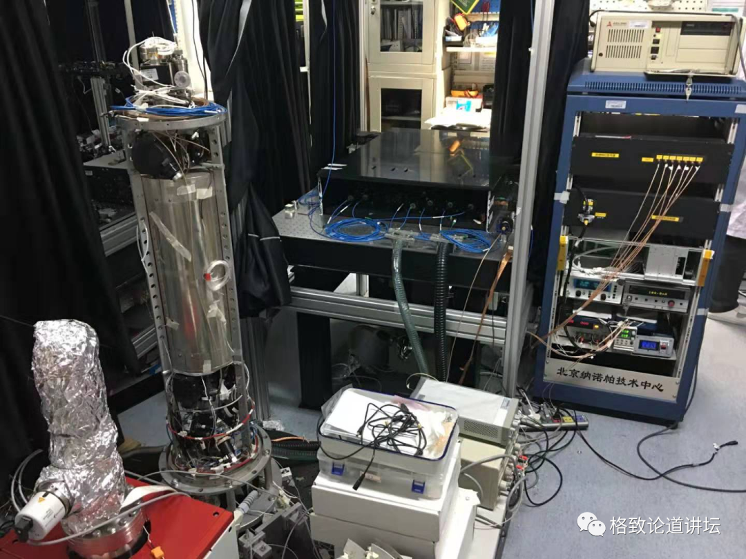 我从2000年进入这个团队,开始做激光冷却实验,5年后我们做出了中国第一个玻色-爱因斯坦凝聚体。那时候我们的激光冷却技术已经非常成熟了,于是开始做空间冷原子钟。这是我们从一个完全空白的实验室建起来的空间冷原子钟的原理样机。
