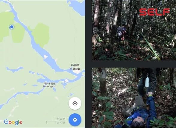回到亚马逊项目,你们看到左上角的蓝点了吗?那就是我们去到的地方,右下角的玛瑙斯就是巴西进到亚马逊的入口。在那里经历很多困难,包括照片里摄影师摔倒了。