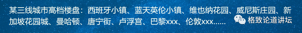 以上是某三线城市高档楼盘的名字。这是我亲身经历过的,如果你想买一套不错的房子,看到那些楼盘或者小区的名字都是:西班牙小镇、蓝天英伦小镇、维也纳花园、唐宁街、罗浮宫、巴黎XXX、伦敦XXX之类的,见不到一个我们中国本土的名字。你所追求的高档社区都是以西方的名字、也就是我们认为最好的名字来命名的。住进这里之后,你还有什么文化自信?