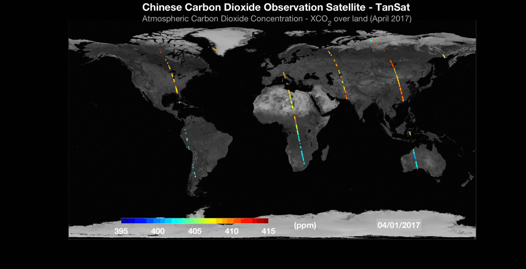 为更精确地监测全球二氧化碳空间分布情况,2009年,日本发射了温室气体观测卫星“呼吸”号(GOSAT),2014年美国发射了轨道碳观测者2号(OCO-2)。2016年,我国自主研发的碳卫星(TanSat)也成功登天运行。这三颗卫星开始了定量的碳监测。