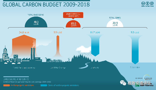 ▲ 2010-2019年,全球碳收支(GCP,2020)