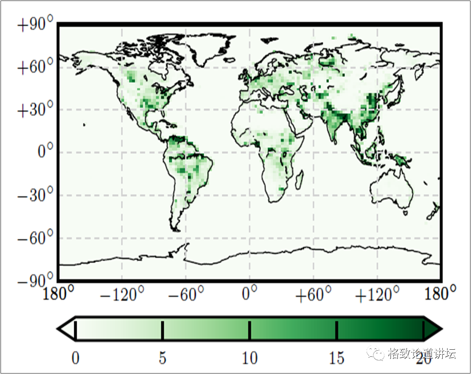 我们跟英国团队在3月16号发表了一篇文章,收录于《自然·通讯》。左边这张图给出了10年间全球甲烷的排放分布,大家看到60%的绿色部分都在低纬,也就是说低纬的热带地区是甲烷的主要来源。