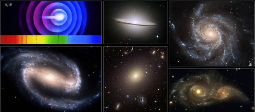 比如说,有的星系它是有结构的,像有的星系中心有雪茄一样的棒旋结构,有的有螺旋一样的结构;而有的星系是没有结构的。碰巧这些没有结构的星系,它的颜色看上去更红一点,而那些在漩涡里面的星系,感觉更蓝一些。