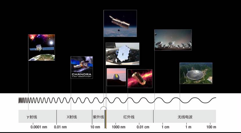 天文学里的望远镜有很多种类,几乎覆盖了整个电磁波的所有波长。大家可能知道,去年我们中国刚刚完成了FAST望远镜,在贵州建立的500米的世界上口径最大的望远镜,用来探测星系里面的中性氢气体还有脉冲信号。