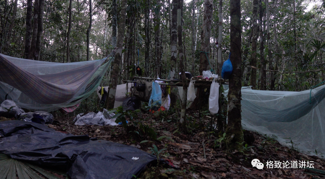 那时候根本不知道晚上发生了什么,睡觉的时候就听到一些“沙沙”的声,而且特别潮湿。雨林的潮湿程度比广州还要多好几倍,睡觉的时候又潮又难受。