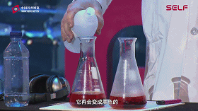 产生了新的棕色的三价铁和无色的硫代硫酸钠,深紫色的物质是新的物质,肯定是一个化学反应。但仔细地看,好像不只有一个化学反应,这个颜色是不是慢慢变了?它慢慢颜色变浅了。