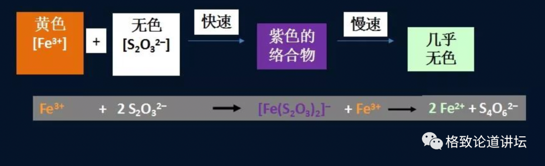 三价铁和无色的硫代硫酸钠会产生深紫色的物质,通过第二个慢速化学反应,最后会变成几乎无色的,现在还没有呈现,怎么把第二个化学反应的速度提高呢?