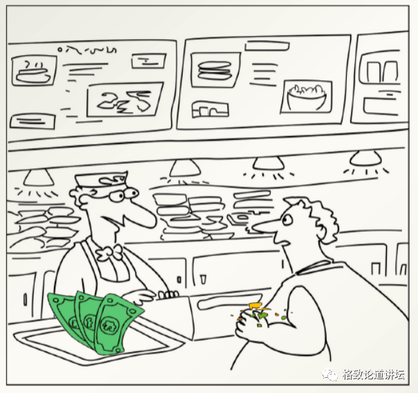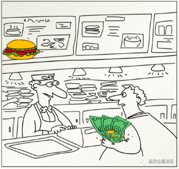 如果我们要吃一点东西,去快餐店都知道怎么做,先要交钱后得到汉堡包。如果你真的有雷锋精神,汉堡包应该给别人,恐怕现在大部分的人都自己吃了。