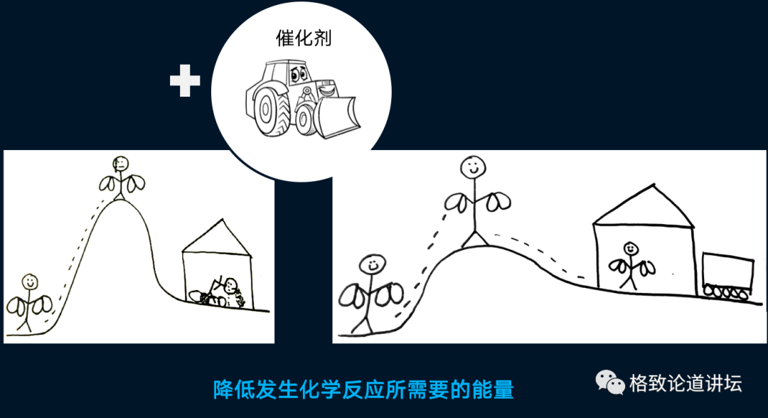 要了解活化能力,可以想象以下,如果你要回家,路中间有一座高山,回家很费劲,需要很长时间。你拿一个推土机把山顶弄掉了,你回家速度变快了。这就是催化剂的作用,它把要吸收的能量降低了。反应后的催化剂还在吗?
