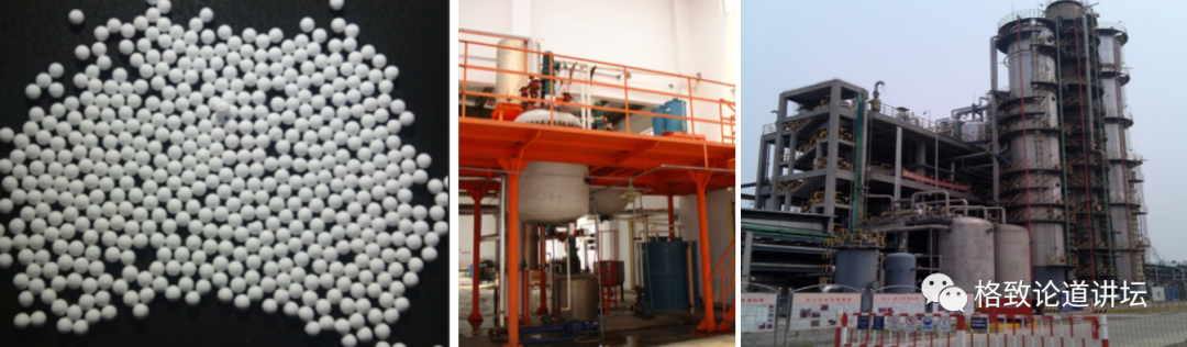 如图,这是催化剂、生产催化剂的小工厂,以及利用催化剂生产双氧水的大工厂。现在很多化工厂开始利用我们的催化剂生产双氧水,他们的评价很高:“你的催化剂比别人的催化剂好多了,活性高,而且寿命长。”别人的催化剂一年以后就没有活性了,我们的催化剂,两年、三年以后还是有高活性,所以他们非常满意。