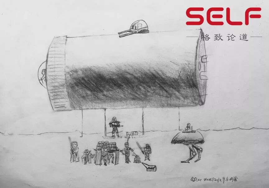 我只是把一个颜料罐放在孩子面前,孩子说这是星球大战里面的一个场景,于是他不但画了这个颜料罐,还画了好多星球大战的场景,我觉得他有很强的想象力。