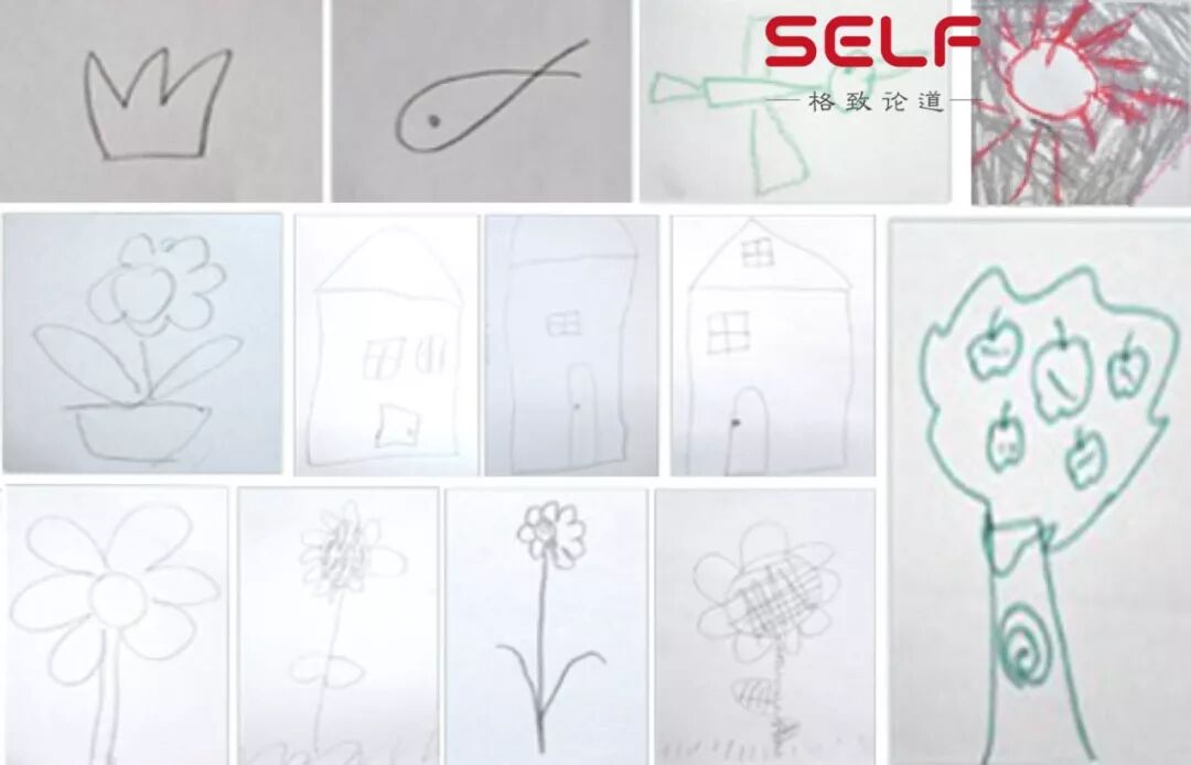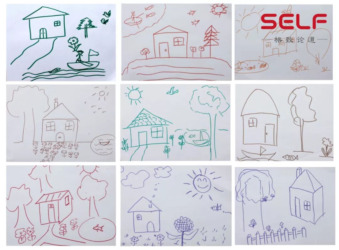 这是我做的另一个实验:我让孩子们随便画一朵花或者一个房子。