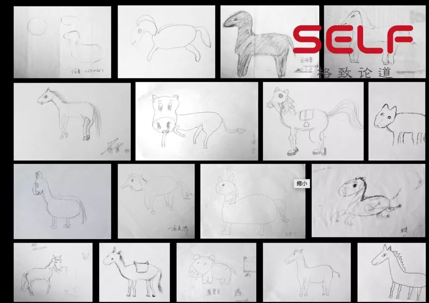 这种教育方式,我把它称之为照抄实物的教育方式,他们总是在看眼前的东西,总是在画眼前看到的东西,如果把眼前看到的东西拿走,没有参照的时候,他们画的马就是刚才的样子。
