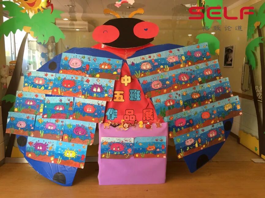 在我们国家幼儿园的美术教育里面有一个现象,我经常去参观他们的美术展示墙,会看到这样的作品:螃蟹、沙滩、大海。