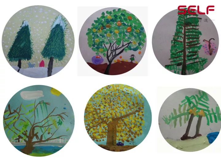 这个孩子观察到所有的柳树,枝叶都是弯弯的,他就把他的观察画了出来。没有模版,就会有各种各样的树,不同姿态的树,而且孩子们在画树的时候还讲了很多很多的故事,比如说下雪的故事,在银杏树下散步的故事等等。