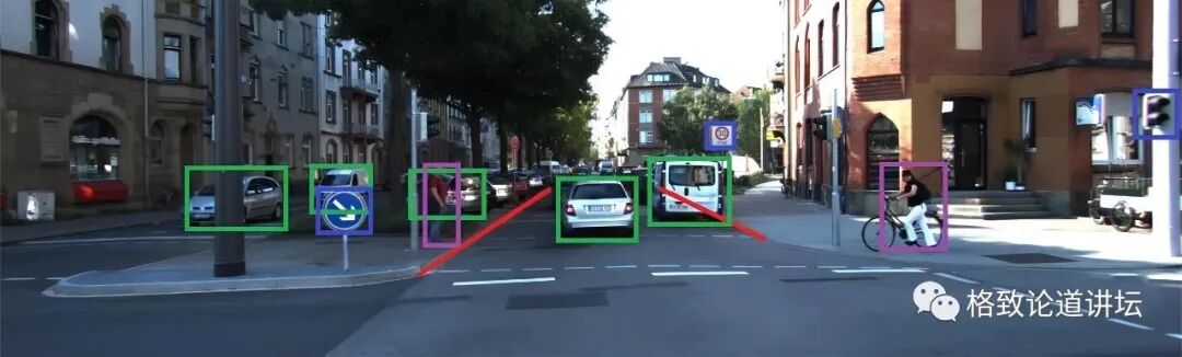 同样,在自动驾驶领域,我们不用再费心地去总结车辆有什么特征,路牌有什么特征,行人有什么特征。我们只需要把标记好的街景交给计算机,它就会自动抽取这些物体的特征。等到上路的时候实现自动识别。