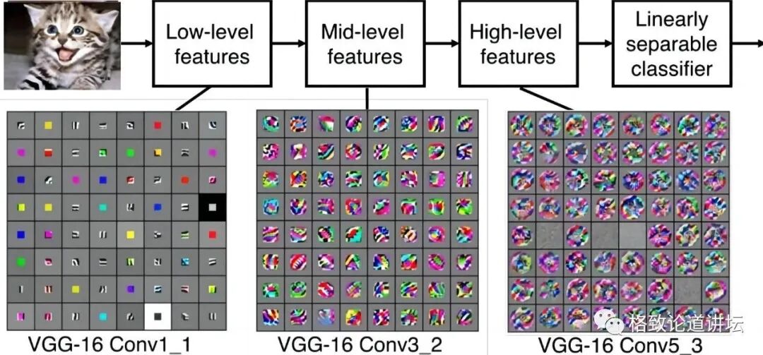 它抽取到的这些特征有些是我们可以理解的,有些可能超出了我们的认知范围。再给计算机一张新的图片的时候,它就可以从里面搜索到猫。