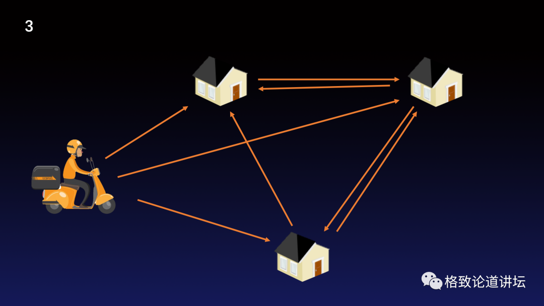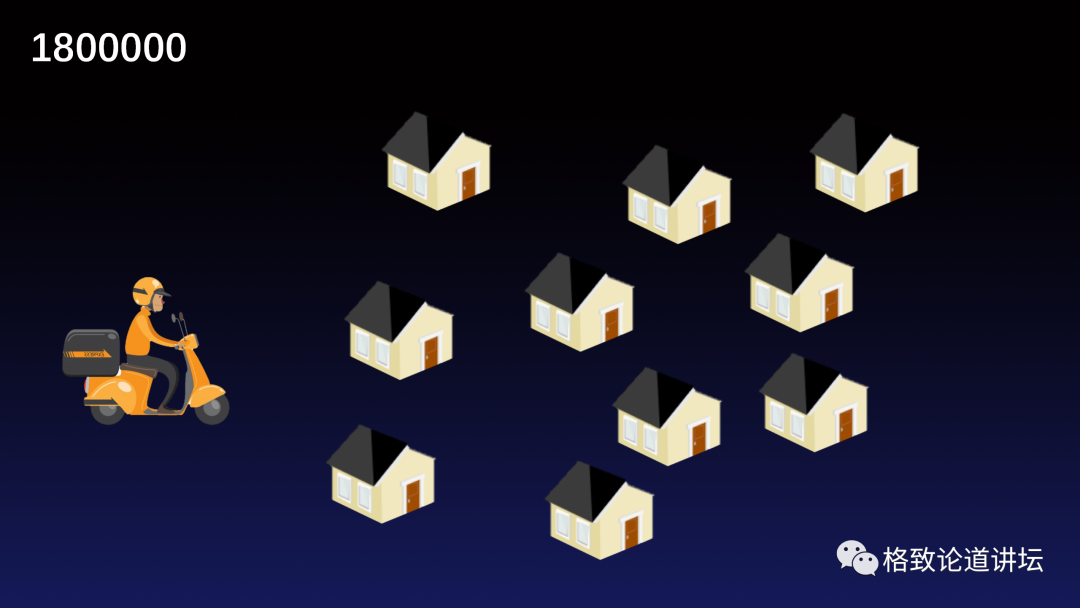 更不要提,其实我还没有计算餐馆数量,外卖小哥还要去取餐。这个问题实际上就是一个典型的旅行商问题。