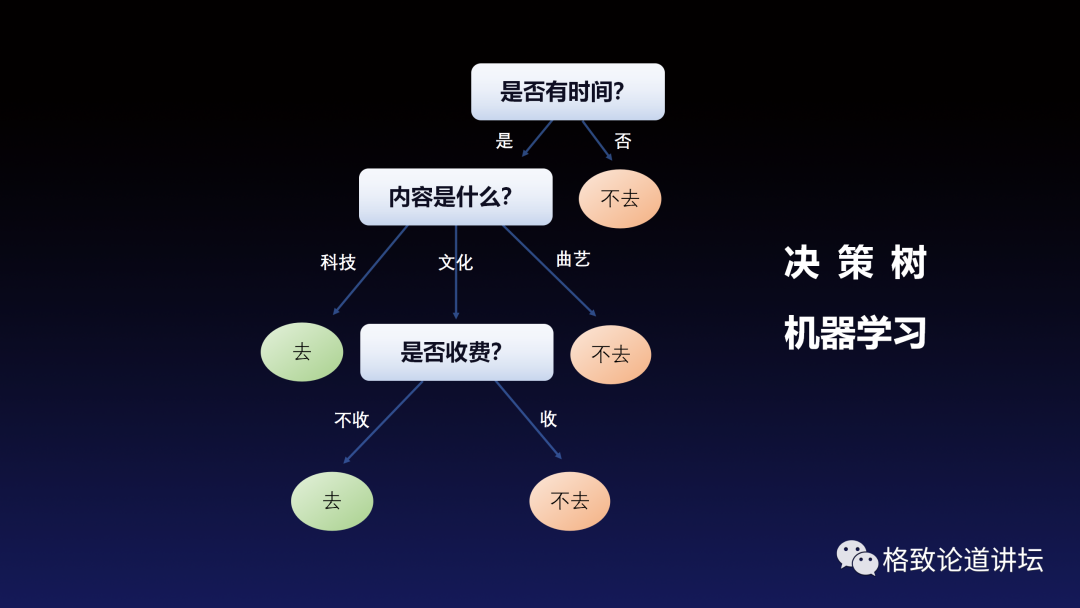 它是按照重要程度从上到下排列的。我拿到这个图形之后就可以了解大家的喜好,对活动内容做出调节。这棵树有一个名字叫做决策树。它属于一类机器学习算法。
