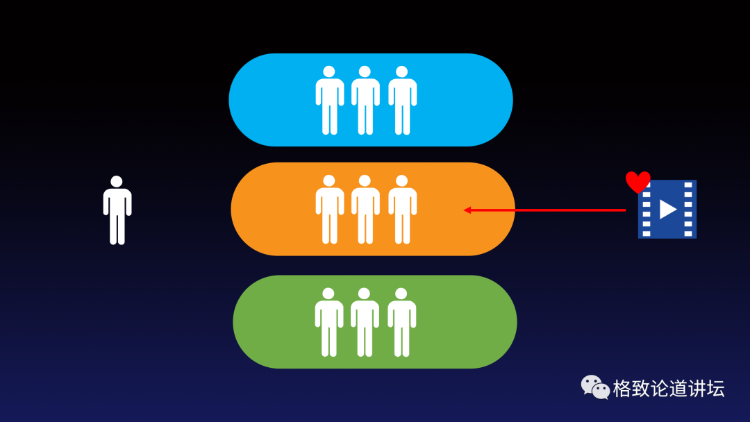 它会按照这些标签把用户进行分组,相似的人都分到一组。跟你相似的这组人,其他人看过并且喜欢的视频就会推送给你,而你会有很大的概率喜欢这条视频。
