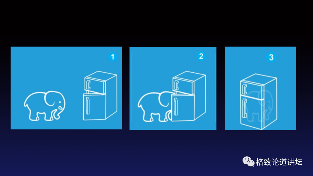 你知道了这个答案之后,下次你把一只企鹅装冰箱,把一头老虎装冰箱,就都会了。