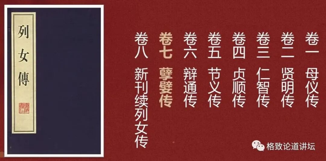 有观众会说,历史上也不是完全没有女性啊?比如我们可能听说过《列女传》,《列女传》是很难得的在历史上,而且是在正史、也就是大家熟悉的“二十四史”当中一直留有记载的一个女性的部分。