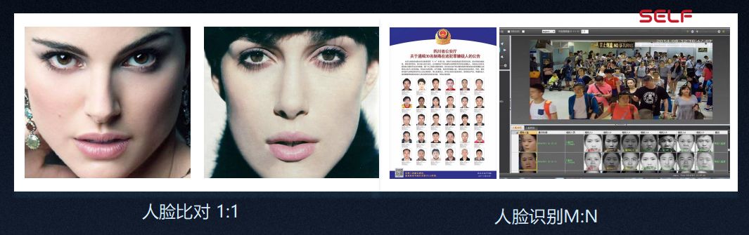 这项技术大家应该很熟悉,我们现在可以刷脸支付、刷脸解锁手机,我们通过海关的时候也会有人脸识别的一些程序判断是不是你本人。这里面大概可以分成两个任务,一个任务是人脸识别,一个是人脸比对。人脸比对的任务就是给出两张照片,判断是不是同一个人。人脸识别就是给出一张照片,去判断很多张照片中的哪张照片和这个照片是同一个人的。