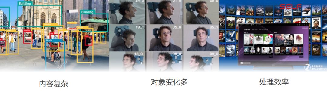 对于计算机视觉来讲,我们还要应对的一个很大的挑战,就是这些对象中包括非常复杂的变化,这种变化可能来自于光照、姿态,也可能来自于其它各种各样形变的因素。而且图像、视频的数据量很大,内容很丰富,这就要求我们的系统具有非常高的处理效率,这些就构成了技术者研究过程中的挑战。