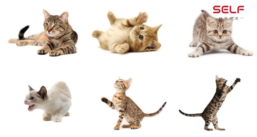 猫可能站着、趴着、躺着,有些猫要跳,还有各种各样可爱的动作。