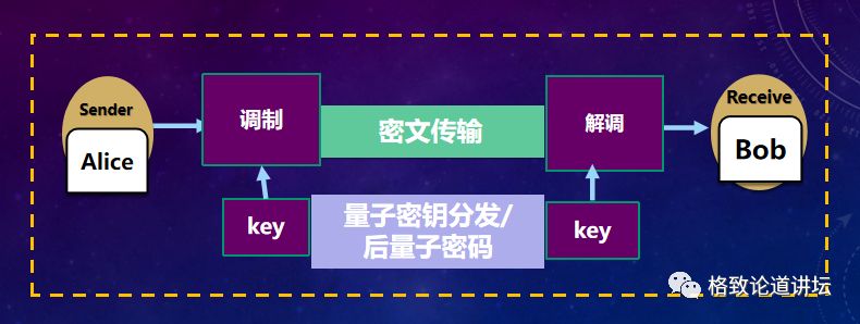 量子计算机对我们的传统保密通信形成了威胁,主要是在密钥分发这个阶段。这个问题有两种解决方法:第一,采用量子通信的方法,把经典的密钥分发换成量子密钥分发;还有一个就是发展经典密码算法,使它能够抵抗量子计算机的攻击。