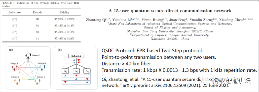 刚才说了原理,那么量子直接通信现在发展到什么地步了?前面我们讲了QKD(量子密钥分发)的情况,这里着重介绍一下量子直接通信的情况。另外,从经典通信的意义来讲,量子直接通信就是通信,而不仅仅是密钥分发。