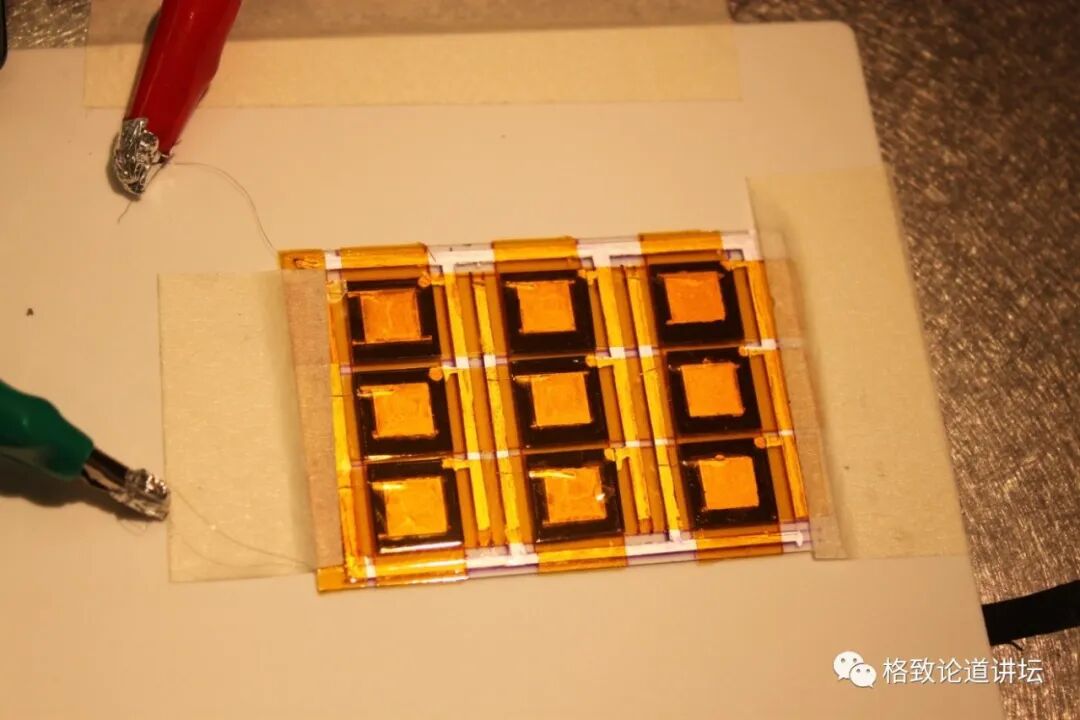 上图是2011年画的,那时我们实现了50伏的输出。从5毫伏到50伏,是1万倍的增加。中间是完成第一步时我和学生的合照。这张照片很有意义,它引导着我们从2006年一直走到了现在。在这一阶段,我们始终在坚持寻找提升器件输出的方法。最终,一个重大的发明出现了,这个发明其实是一个小小的现象引发的。