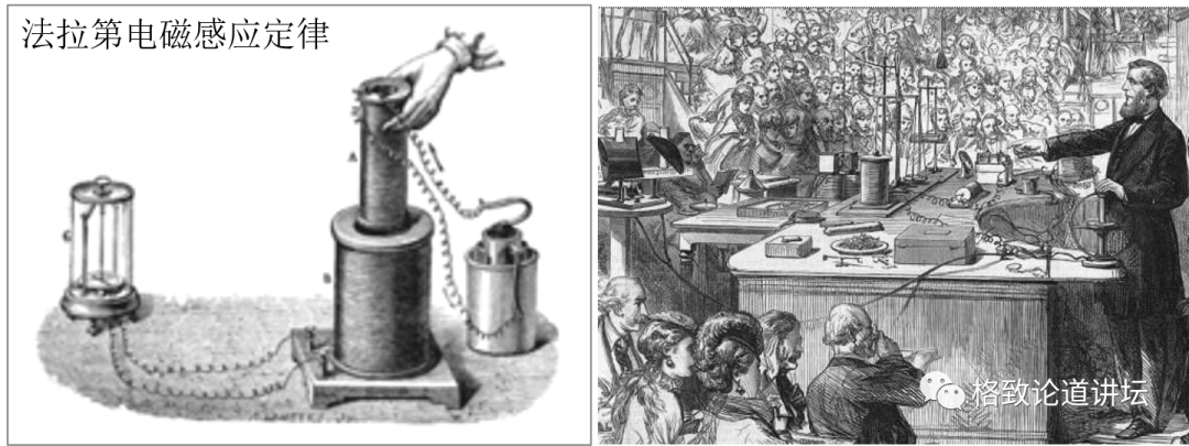 1831年法拉第提出电磁感应定律时,很多人是不相信的。右图就是法拉第给人们科普的场景,他可能想不到这个定律会对世界产生如此大的影响。