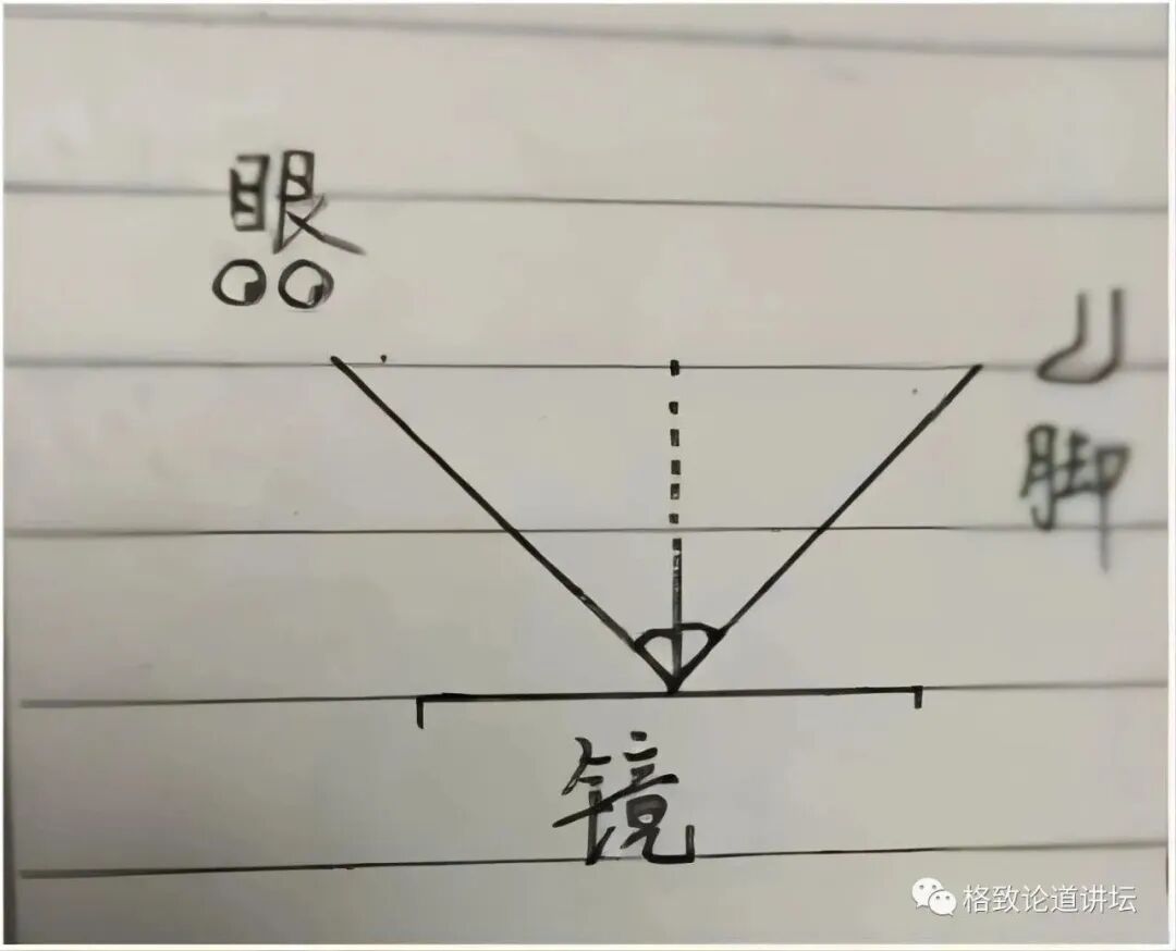 第3个问题,我让他最后总结一下光的反射有什么样的规律,他也在百度找了资料,然后用自己的话总结出来。我当时就非常高兴,并让他把自己的研究体会带到班上去讲给同学听。