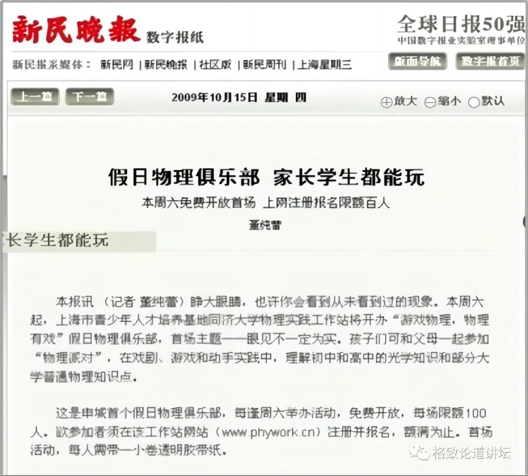 上海市科委、教委看到了以后说:“你对青少年开放吧!”所以建立了上海市青少年科技人才培养基地——同济大学物理实验工作站。这是上海第一家工作站,现在上海有20多家这样的工作站。我们的经验也传授给了其他开工作站的老师。