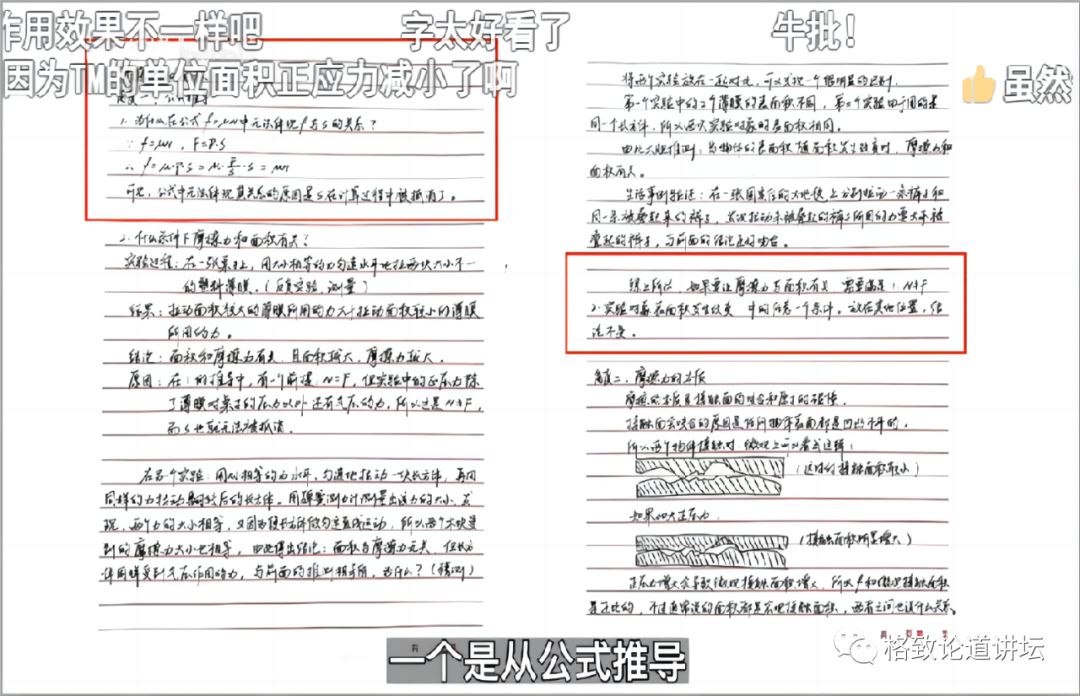 这是我身边的一位孩子,我就鼓励他去研究研究。结果他写了一个小论文,研究出来就是说这个结论有一定的条件。而且他研究过程当中,把到底怎么产生摩擦力的原理也基本研究到位了。当然,整个论文还是有点问题的,那么我鼓励他继续做。因为只要你鼓励了,他真的会研究。你不要小看他们,我们老说,相信孩子的一切可能。
