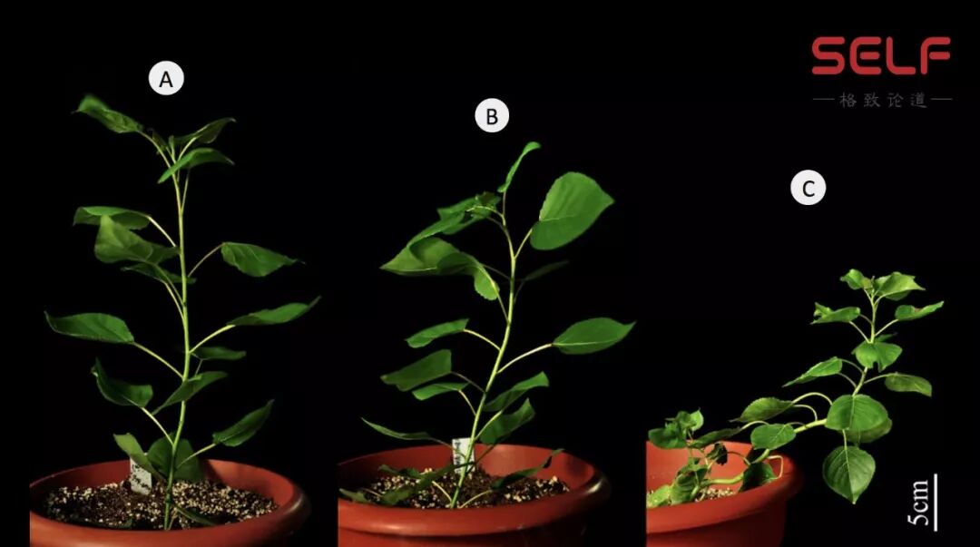 到这里有的人可能会觉得研究这个有什么用呢?C这个植株的表型出来以后,有的人说这个表型太好了,以后做盆景的时候不用发愁了,它自己打着旋就垂下来了,不用再去拗了。B这种植株出来后,有人问以后能不能培育出来一些很结实的杨树,这样就不用买红木了,就用杨树,这个木头跟红木一样。我说这个倒是有可能的。但是现在有没有真正能够应用出来的改变细胞壁的技术?